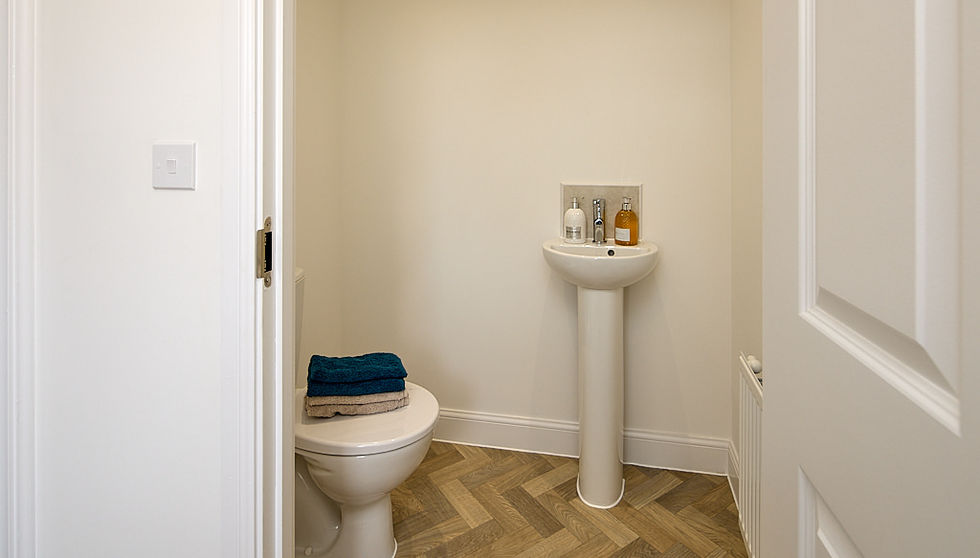 Plot 447 is a two-bedroom, semi-detached home featuring open-plan living on the ground floor. The living room and entrance lobby are positioned at the front of the property, while the thoughtfully designed kitchen and WC are located to the rear. Upstairs, there are two generously sized bedrooms and a family bathroom. The home also benefits from ample storage throughout, making it easy to keep everyday clutter neatly tucked away.